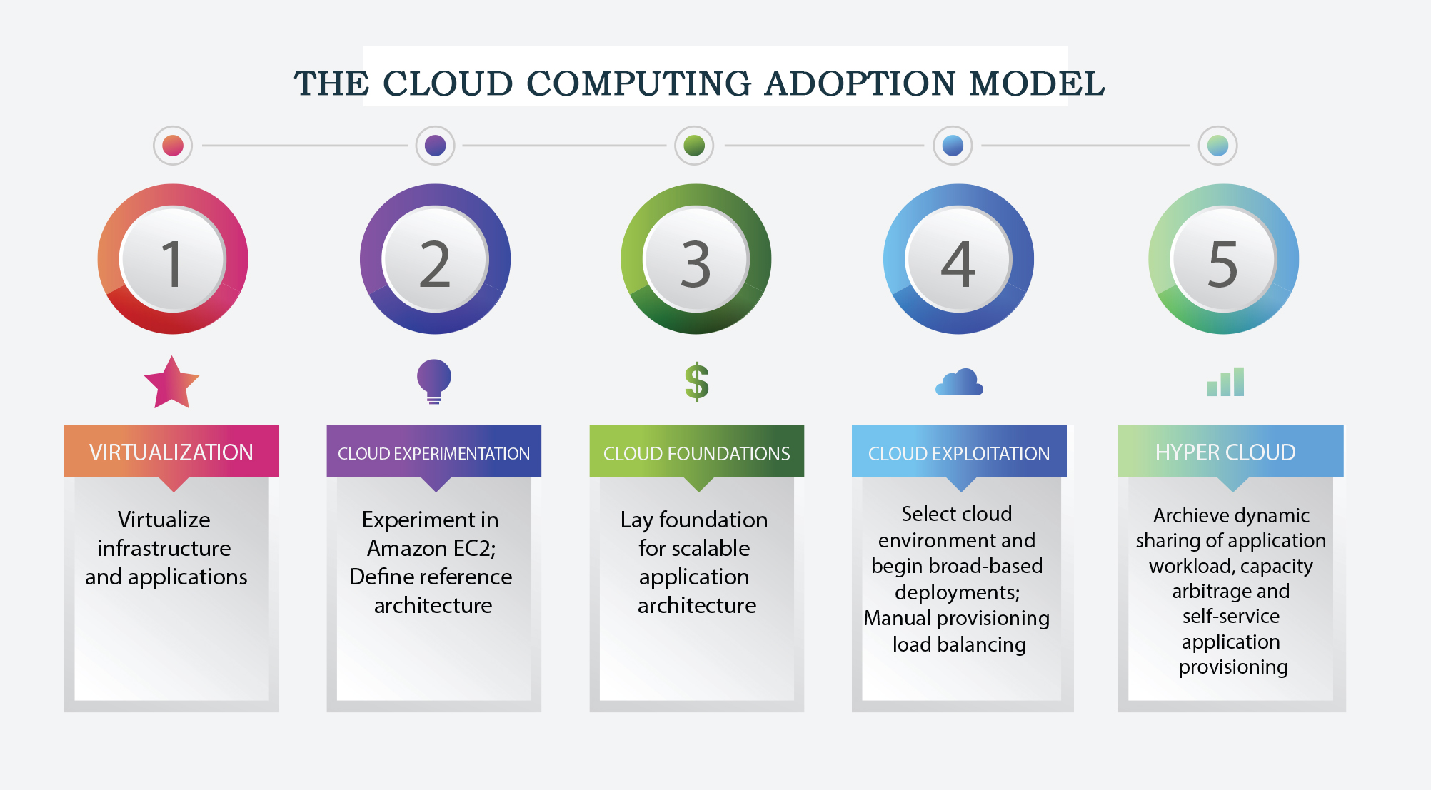 For most large organizations with a diverse mix of applications and platforms, moving to the cloud may require a complete rethinking of the IT environment, organization structures, roles and responsibilities, skills mix, development and support processes and even KPIs, SLAs and measurement metrics.